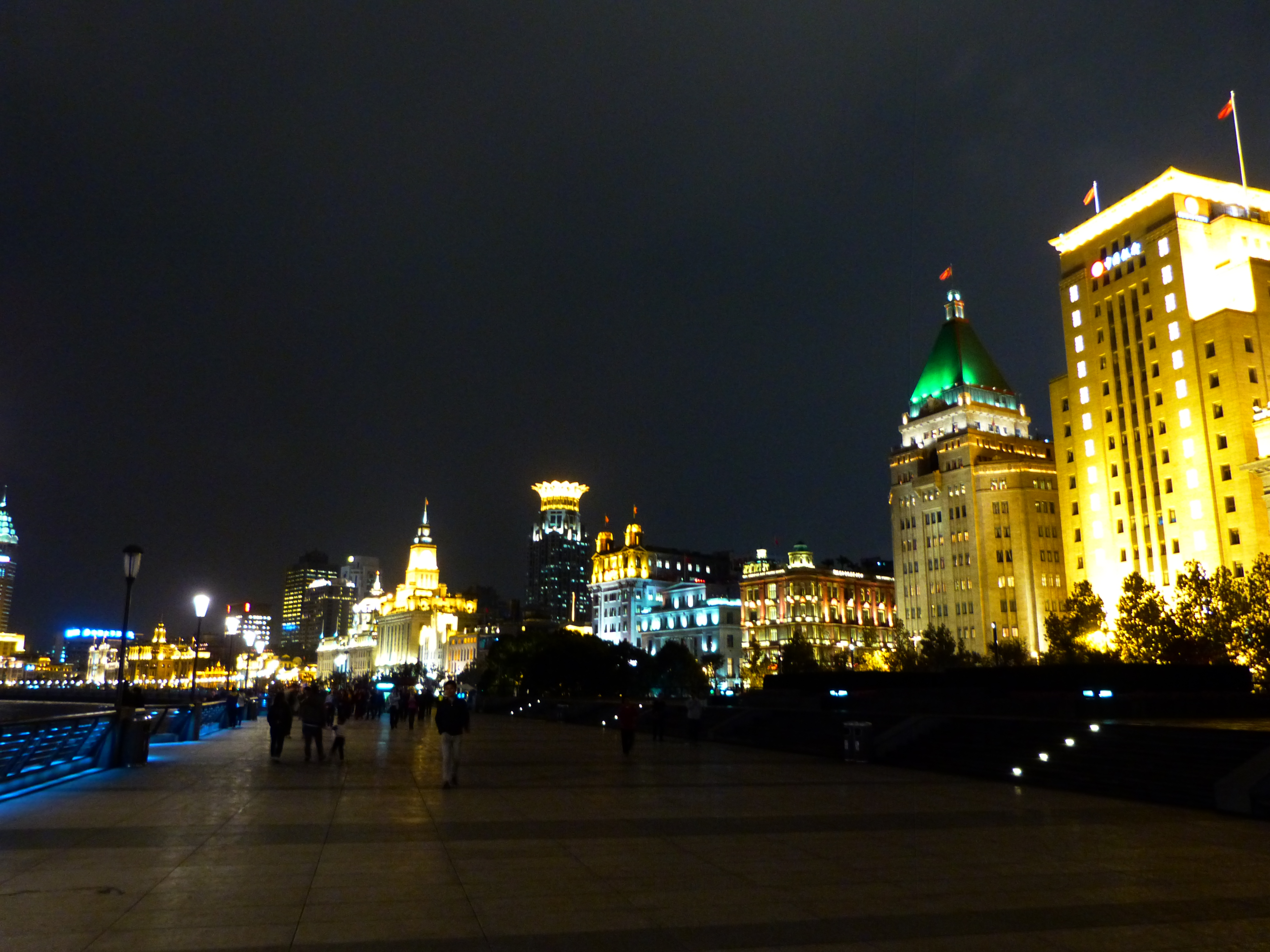 Heute verbreitet es wieder die gediegene Atmosphäre wie wohl schon vor 100 Jahren mit weiß gekleideten Pagen, seiner dunklen Holzverkleidung und dem dicken Teppich, der den Lärm verschluckt. Als wir damals dort abgestiegen sind, gab es keine Pagen und keinen Teppich und die großen Suiten mit ihren Stuckdecken waren Schlafsäle. Das Hostel war zum Teil so überlaufen, dass auch in den Gängen Feldbetten aufgestellt wurden, darüber wirbelten Ventilatoren. Es gab keine Klimaanlage. Die Atmosphäre war wie in einem Lager. Ich weiß noch, wie ich mit zwei deutschen Sinologiestudentinnen am Tisch in unserer „Schlafsaal-Suite“ saß und mir von ihnen die chinesischen Schriftzeichen für Deutschland vormalen ließ, damit ich sie auf meine Postkarten schreiben konnte. 🙂 Gegenüber vom Astor ist damals wie heute das russische Generalkonsulat und daneben das Seagull Hotel, damals stach es durch seine Größe heraus, heute verschwindet es unscheinbar zwischen den neuen Wolkenkratzern. Im Seagull gab es oben ein russisches Restaurant, welches Glück war es doch, nach wochenlanger chinesischer Kost ein westliches Mahl einzunehmen. Dummerweise ging gerade dann ein Taifun über Shanghai nieder und das Wasser stand knietief auf der Straße, als wir wieder in unser Hotel wollten. Bis heute frage ich mich, wie es möglich ist, dass das Wasser auf der Straße so hoch steigen kann, aber es war tatsächlich so. Eigentlich hatte ich mit dem Gedanken gespielt, nochmal im Astor zu wohnen, aber es wäre doch recht teuer gewesen… vielleicht beim nächsten Mal!