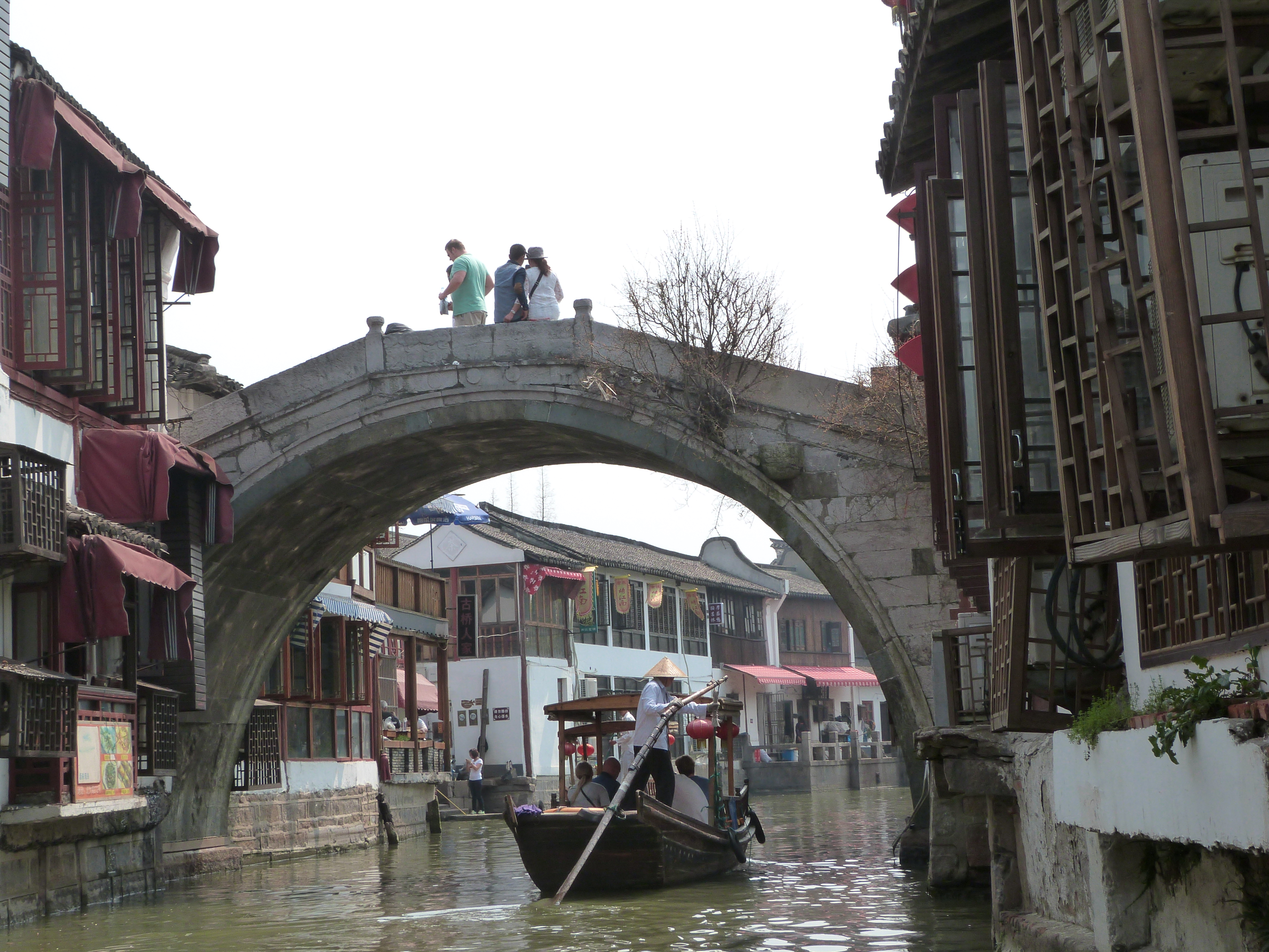 Mit Nelli und Alex habe ich abends noch eine Bootsfahrt auf dem Huang Pu unternommen, aber so toll war das nicht. Am letzten Tag sind wir in eines der historischen Kanaldörfer in der Umgebung von Shanghai gefahren, Zhujiajao. Der Ort ist zwar sehr touristisch (und lockt vor allem einheimische Touristen an), aber die Atmosphäre war sehr angenehm.
